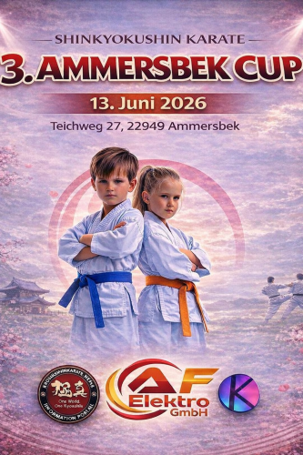 Wir veranstalten den 3. Ammersbek Cup bieten Karateka aller Alterklassen - von Kindern bis entschließlich U21 - die Möglichkeit, sich im Vollkontakt - Karate zu messen und wervoller Wettkampferfahrungen zu sammeln. Im Mittelpunkt stehen dabei Sicherheit, sportlicher Respekt und Freunde am Karate. Sowohl für Anfänger als auch für Forgeschnittene gilt: Dabei sein ist wichtiger als gewinner.