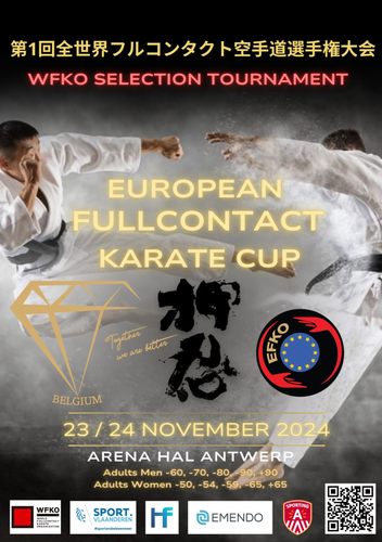 The tournament in Antwerp, Belgium will be the official selection tournament to select European fighters for the WFKO World Championship. Our goal is to send the strongest European team to Japan. Open and fair tournament: This tournament is open for all Fullcontact karate organizations and styles.